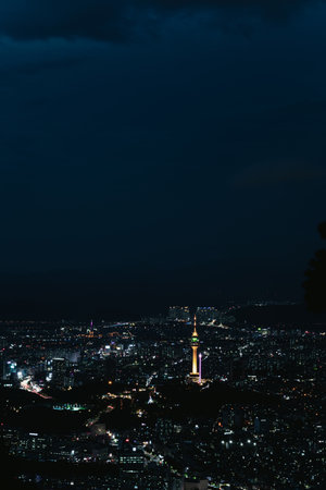 Seoul city night view taken from Namsan Mountain in Seoul, South Korea at night time