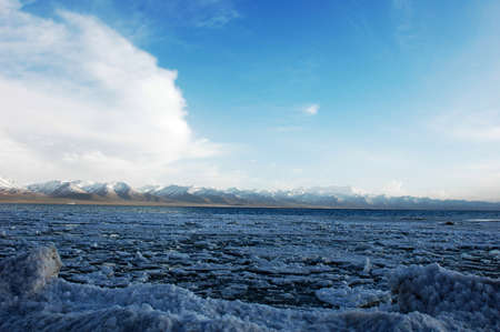 Landscape of the famous Lake Namtso in Tibet in the winter