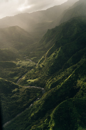 Aerial View of Waimea Canyon State Park, Kauai County, Hawaii, United States. High quality photo