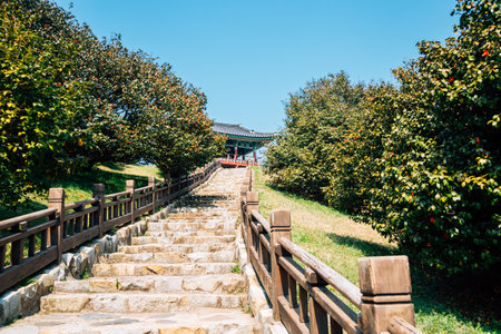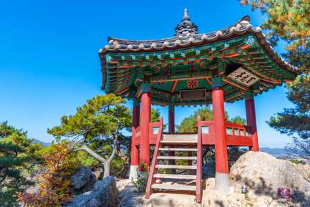GEOJE, SOUTH KOREA - MAY 20, 2018 : Traditional Korean style pavilion at Okpo great vitory commemoative park on Geoje island, Gyeongsangnam-do, South Korea.