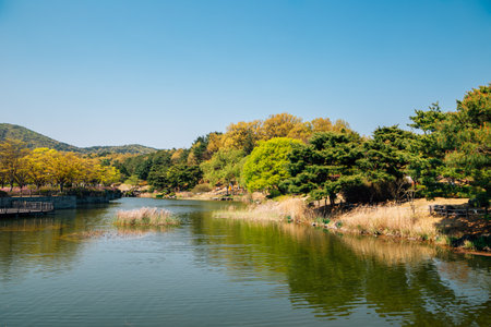 Hwarang Recreation Area park lake view in Ansan, Korea