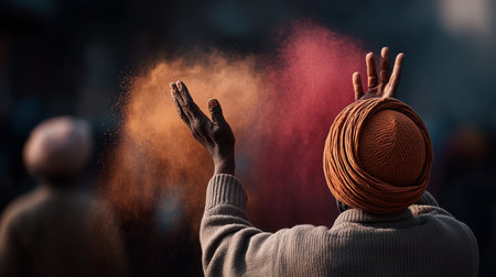 Traditional and religious Holi Festival, Color battle at the holi festival, colorful background, People celebrate fertility of spring and enjoy the colorful festival. High quality