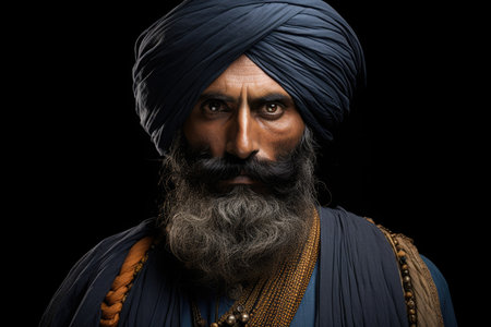 Portrait of mature asian male with blue turban and beard
