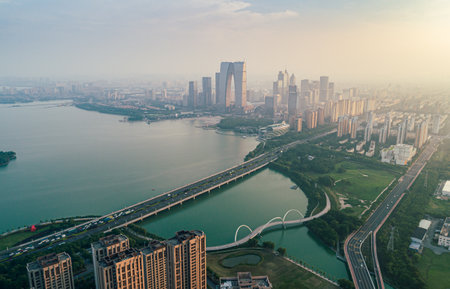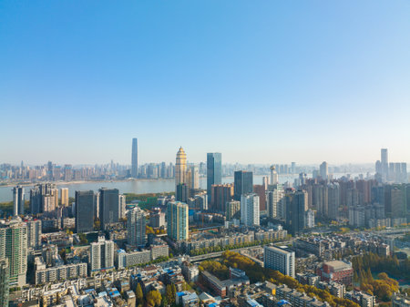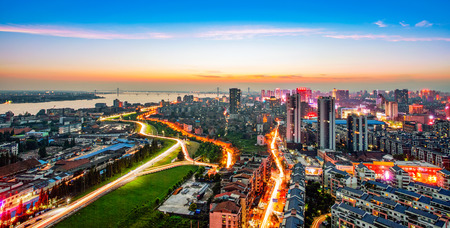 Sunrise and dawn skyline scenery of Wuhan city, Hubei