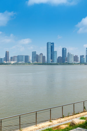 Landscape of high-rise city along the river in Nanning, Guangxi, China