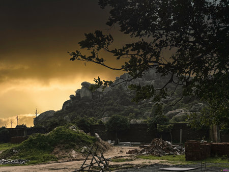 Dramatic Sunset Over Rocky Hills and Rural Landscape, Naga Hills, Kanke to Patratu Road, Ranchi, Jharkhand.