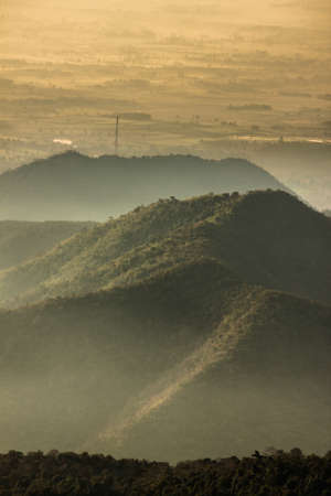 Top View Mulayit Taung golden light of the morning sun and the mist covered on Mount Mulayit,Myanmar