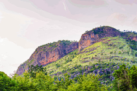 mountain top view of hill range with clouded sky at evening image is taken at gokarna karnataka india.
