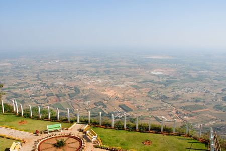 Scenic view of the landscape of the plains and the salem city from a view point in Yercaud, Tamil Nadu