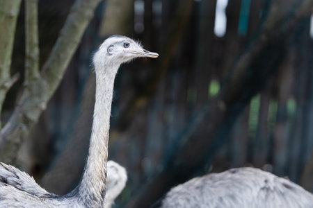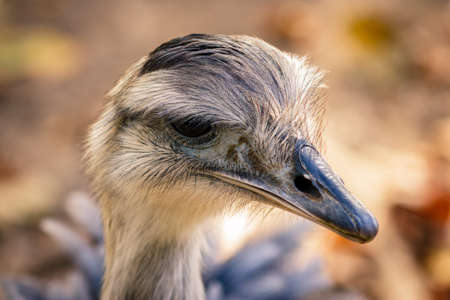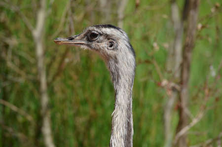 Portrait of a Nandu (Rhea americana), view of neck and head. Photography of nature and wildlife.