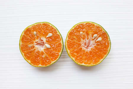 orange on white background Half an orange and orange juice.