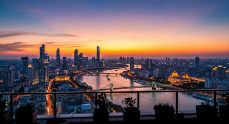 Panoramic view of the city's dusk skyline