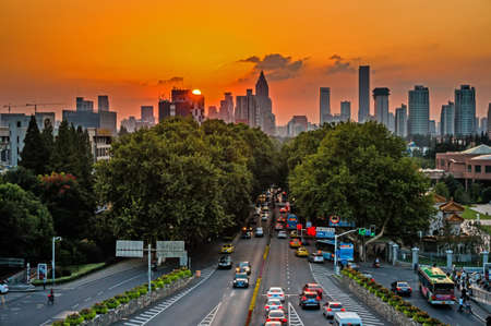 modern city traffic and shanghai skyline , China