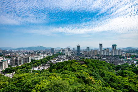 View of West Lake and the city center from top of Wu Hill (Wushan) in Hangzhou, China
