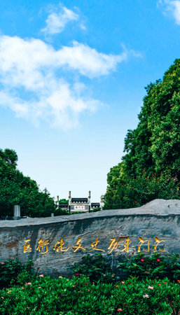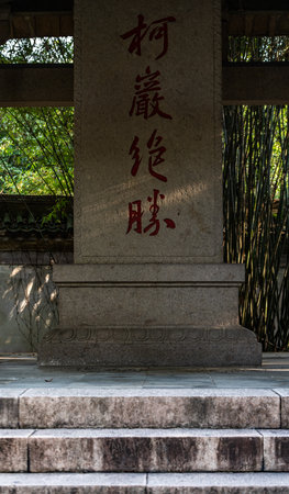 Hangzhou, China - 14 May 2019: Entrance sign to the Xiling Seal Art Society in Zhongshan Park near West Lake