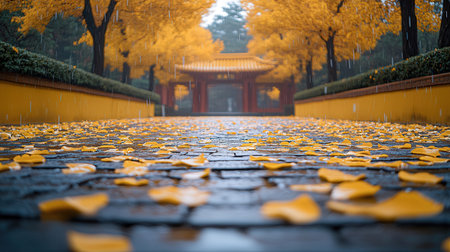 Autumn leaves falling on the ground in the park, China.