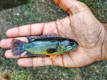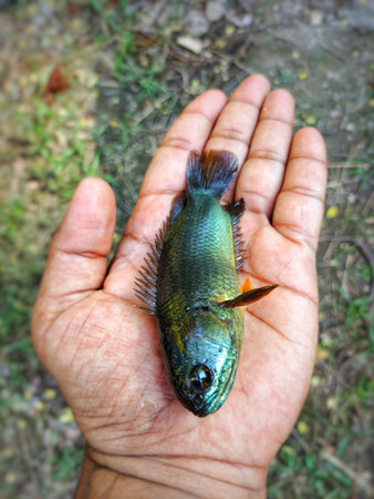big anabas perch fish in hand in nice blur background HD
