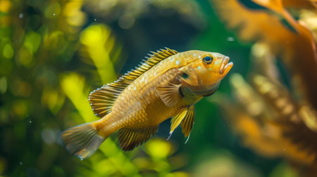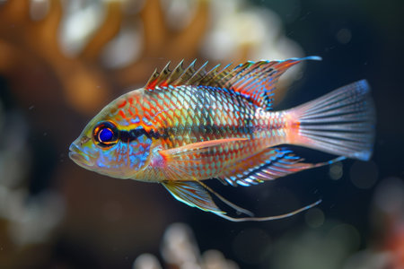 Vibrant cichlid fish in underwater scene