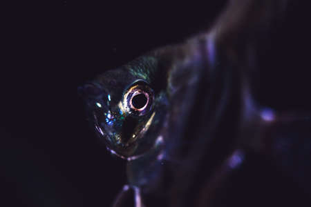 Beautiful tropical fish in an aquarium on a dark background, Thailand