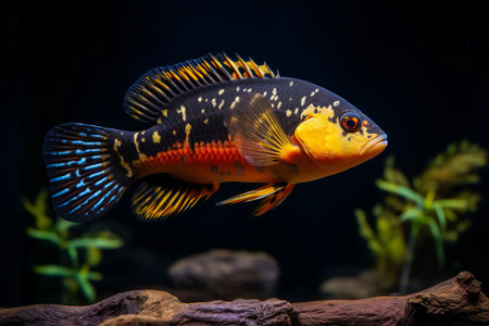 The Majestic Astronotus Cichlid: Exploring the Enchanting Aquariums of the Amazon Basin on a Dark Canvas