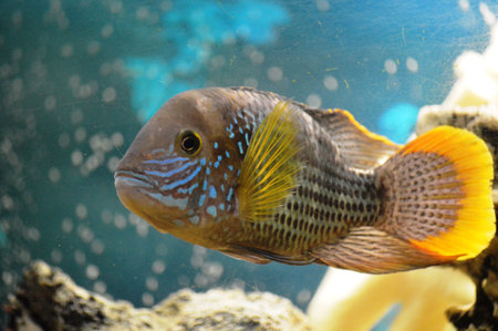 Cichlid fish in an aquarium, closeup of photo