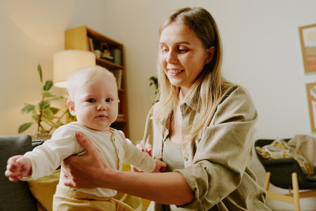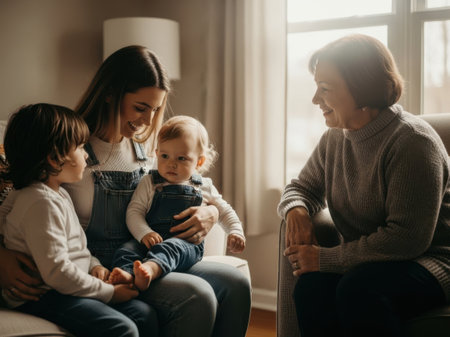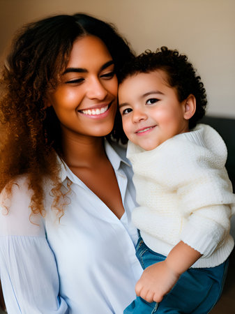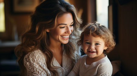 A mother with a child in a room, created with the help of generative AI technology.