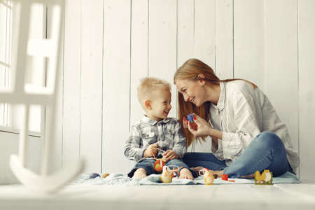 Mother with son at home prepare to easter