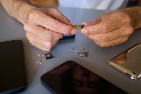 sim card and micro sd card on smart phone, soft focused