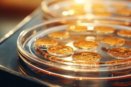 close-up of vibrant bacteria colonies on a petri dish, created with generative ai