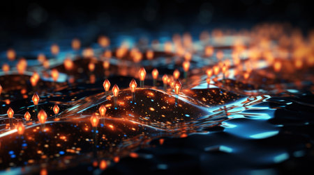 A threedimensional sphere of interconnected blue nanoparticles radiating light as it animates with traffic spikes illustrating the complex interplay of information exchange in the ag