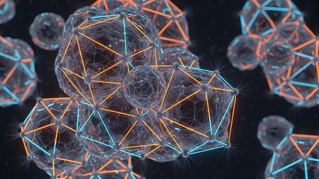 Futuristic virus structure with abstract molecular design in vibrant colors.