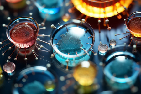 Futuristic virus structure with abstract molecular design in vibrant colors.