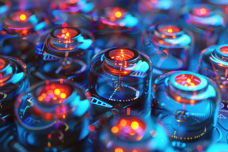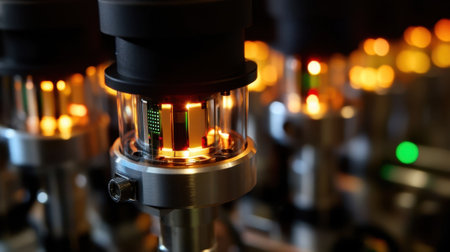 Glowing vacuum tubes in high tech laboratory setting