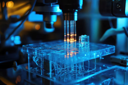 Laboratory equipment glowing blue in a modern research facility