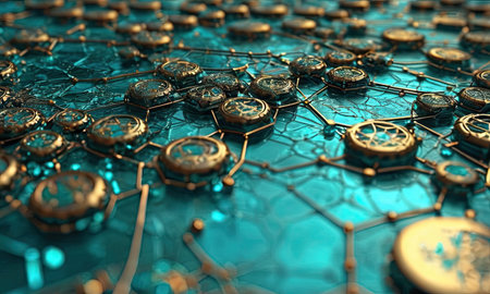 This abstract image depicts an intricate network of interconnected nodes, showcasing the beauty of technology and connectivity in a vibrant, colorful design.