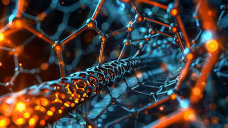 Scientific Research. Molecular Nanotechnology. Abstract Molecular lattice. 3D illustration. Current trends in medicine, biology, physics, chemistry.