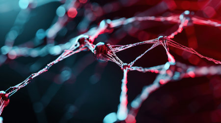 Close-up view of an abstract molecular structure featuring vibrant colors and intricate connections, representing advanced science and technology concepts.