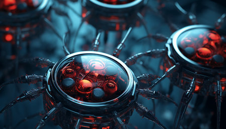Futuristic virus structure with abstract molecular design in vibrant colors.