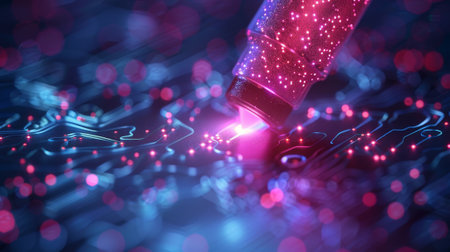 Futuristic technology scene. Intricately designed computer components in a high-tech setting, highlighted by vivid colors.