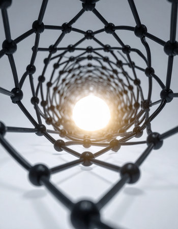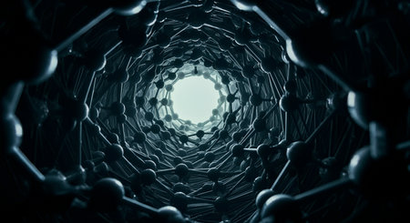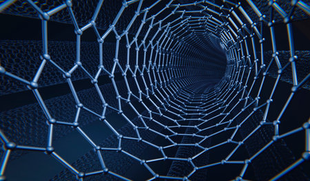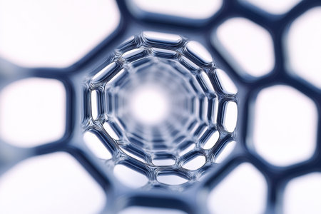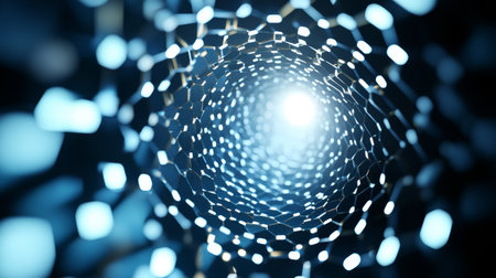 A journey into the heart of nanotechnology. This view from within a carbon nanotube reveals its perfect hexagonal lattice, a structure of immense strength and potential.