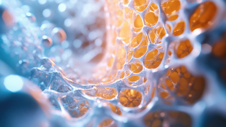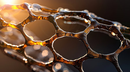 Intricate structure of honeycomb with warm glow, showcasing beauty of nature design. delicate patterns create mesmerizing visual effect, highlighting interplay of light and shadow