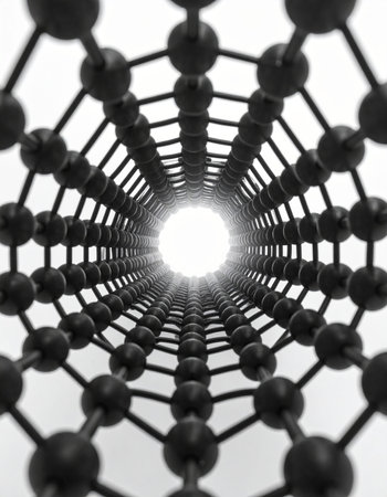 This close-up view showcases the intricate details of a metal structure, A vivid depiction of carbon nanotubes, atom by atom, AI Generated