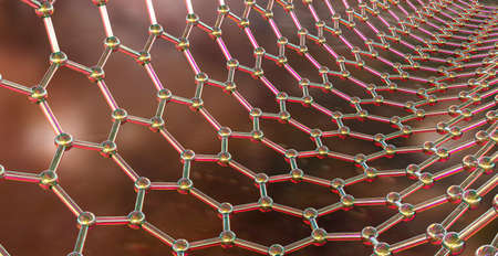 carbon nanotubes, graphene structure with carbon atoms, honeycomb, nanotechnology concept illustration (3d render)