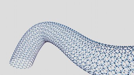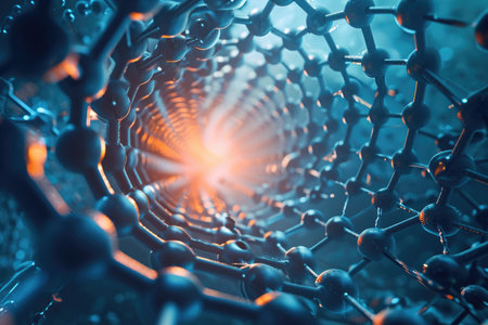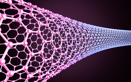 Carbon nanotube, 3D illustration showing hexagonal carbon structure of a nanotube, also known as buckytube