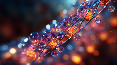 Beautiful colored bright abstract futuristic scientific glowing dna helix. AI generated.