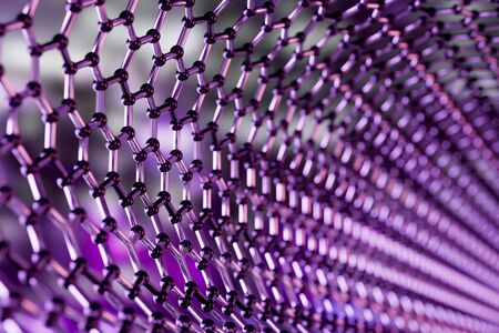 View of a graphene molecular nano technology structure on a purple-pink background - 3d rendering