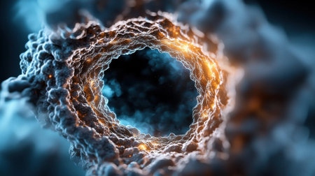 The computer-generated depiction showcases a black hole in outer space, exhibiting its intense gravitational pull. The swirling darkness consumes everything in its vicinity, including light itself. The event horizon marks the point of no return, where even time begins to distort.