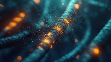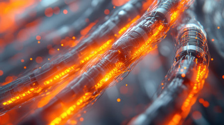 Close-up of fiber optic cables. Computer generated 3D photo rendering.