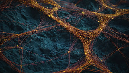 A visually striking representation of a futuristic molecular network featuring interconnected glowing nodes. the dynamic interplay of light and structure symbolizes advanced technology, scientific research, and innovative design suitable for various multimedia applications.