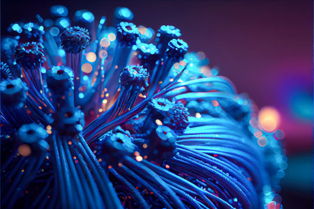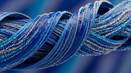 Close up of a shiny blue fiber optic cable. 3D rendering